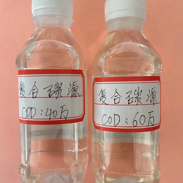 復(fù)合碳源又稱生物碳源,其主要成份是多元醇、脂肪酸和多糖及其衍生物。是一種由多種水解單糖、二糖、短鏈醇/酸,同時添加微生物促升劑、糖開環(huán)催化劑、微生物益生因子。復(fù)合碳源能更好的培養(yǎng)細菌,提高污水的可生化性,有效改善污泥的親和性,比尿素的效果要來的快。復(fù)合碳源中的COD、BOD為菌種供應(yīng)生長繁殖,可以以防污泥老化,提高生物活性。復(fù)合碳源有菌促升劑和活躍劑,在冬天溫度較低時,可以讓菌迅速繁殖并增強菌的活
